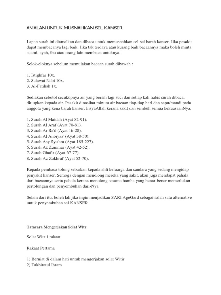 Hari ini kita akan melibatkan 50 poin doa untuk kanser penyembuhan. Semoga allah menyembuhkanmu secepatnya, dengan kesembuhan yang tiada sakit selepasnya. Doa untuk orang tua yang sedang sakit. / check spelling or type a new query. We did not find results for: