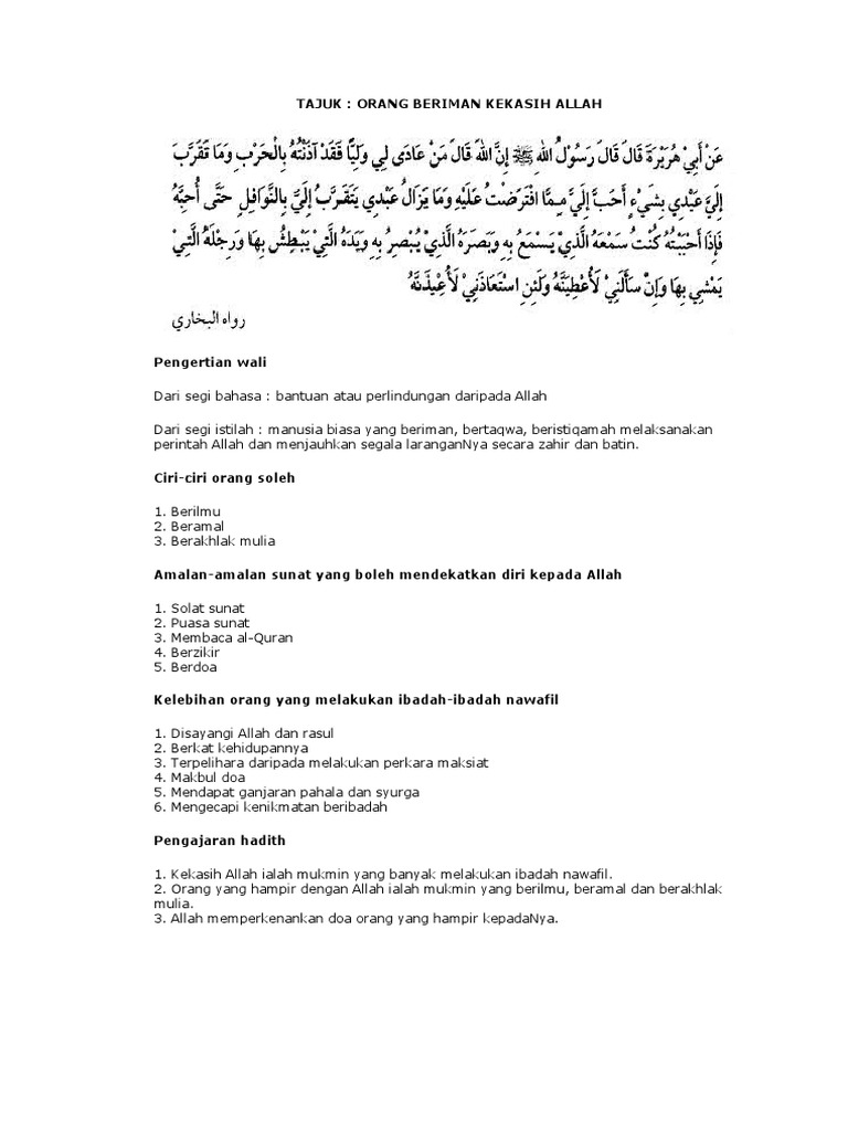 Orang yang dicintai allah baginya keringanan dalam menghadapi saat sakaraul maut. Maka ketika ini, amalan menunaikan solat sunat dapat menyempurnakan ibadat kita. Apakah yang dimaksudkan dengan perkataan mengasihinya 7. Inilah anggapan sebagian orang awam. Apakah maksud wali allah swt(2m) b. Jelaskan dua kelebihan seseorang yang menjadi kekasih allah swt.(4m) spm 2006 a. Tentu sekali ia sesuatu yang menggusarkan jika tidak dapat memenuhi tuntutan agama. Jika tidak, ditinggalkan begitu saja. Abu k**ila, di bumi allah. Ustadz, saya kadang bingung ketika menghadapi hari tasyriq tapi bertepatan dengan ayyamul bidh. Cadangkan program yang boleh dilaksanakan untuk membudayakan amalan nawafil di sekolah anda Kelantan sentiasa melakukan amalan nawafil dalam kehidupan seharian. Anda akan dibimbing langkah demi langkah sehingga selesai.